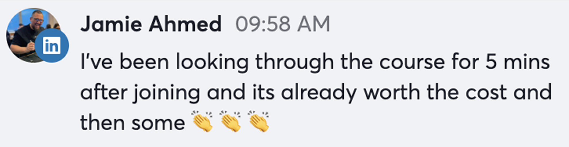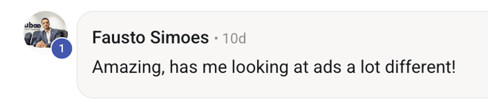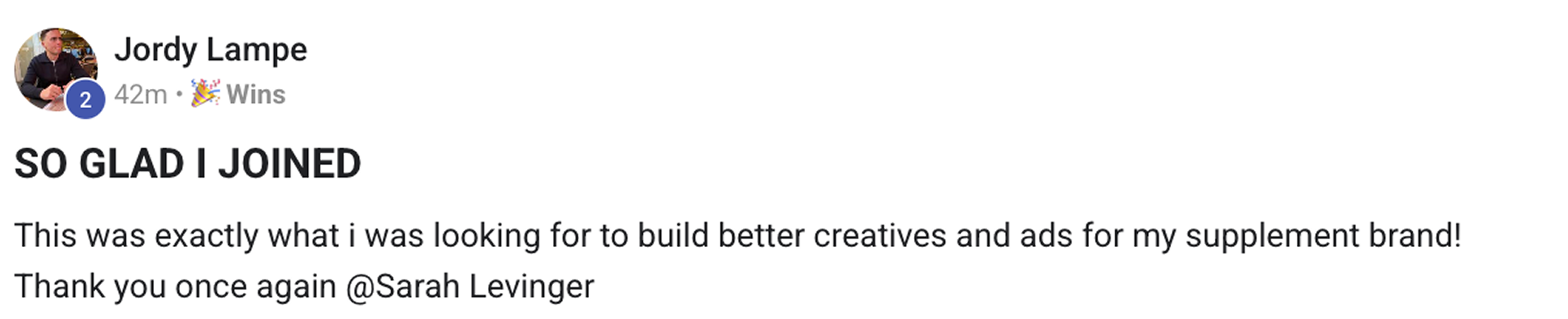 “Blown away at how amazing the course content is Sarah! I feel like I haven’t heard any of this anywhere else before, so it’s giving me a tonne of new lenses to look at our ads through.”