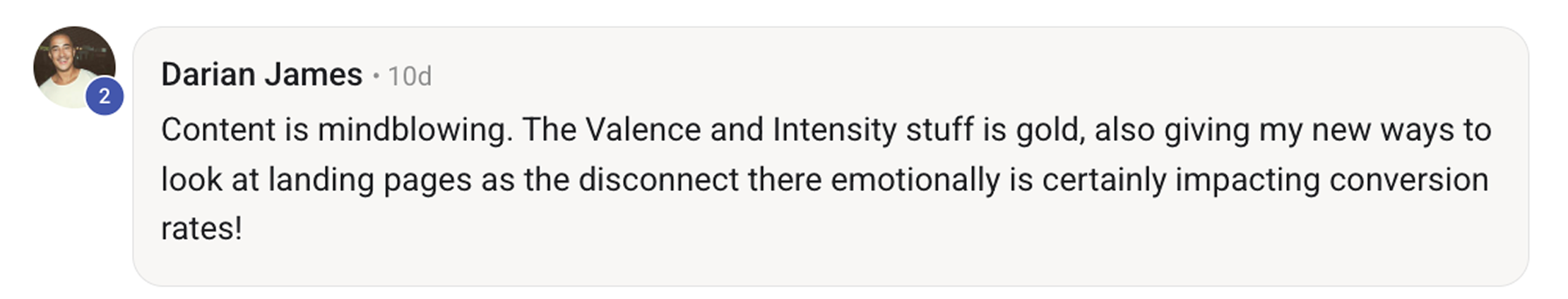 Every emotion has two levers: Valence (positive or negative) and Intensity (whisper or scream). You’ll learn how to identify both and use them to pinpoint why your ad’s emotional tone either connects or repels.